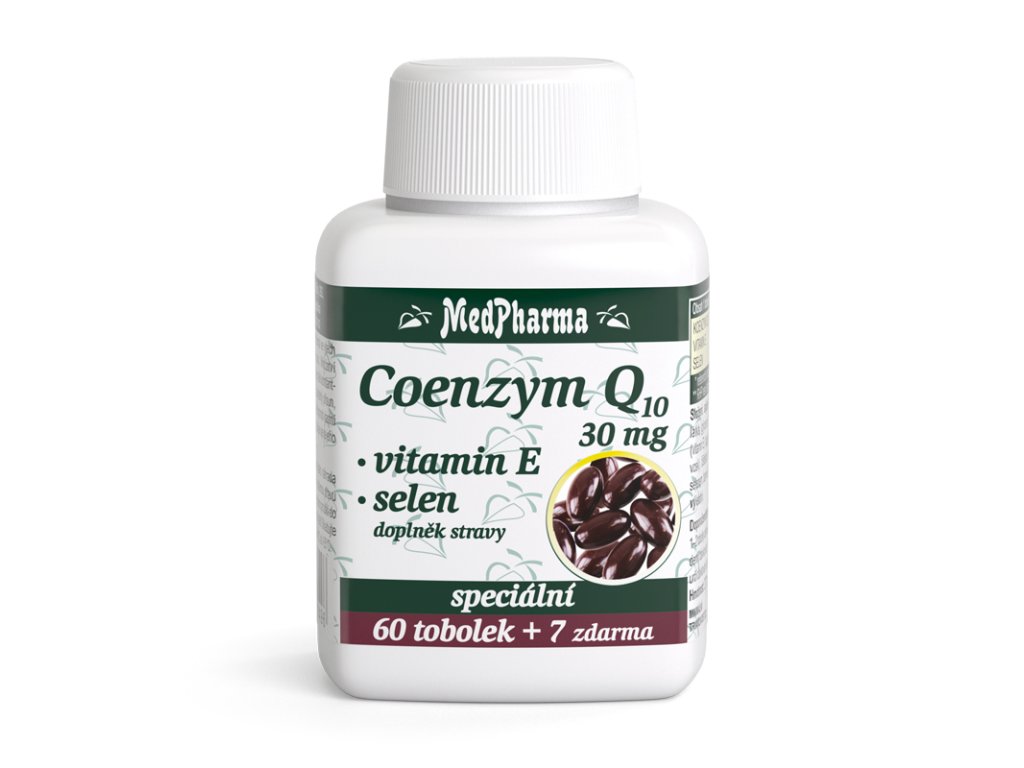Přípravek Coenzym Q10 30 mg obsahuje navíc vitamin E a selen.